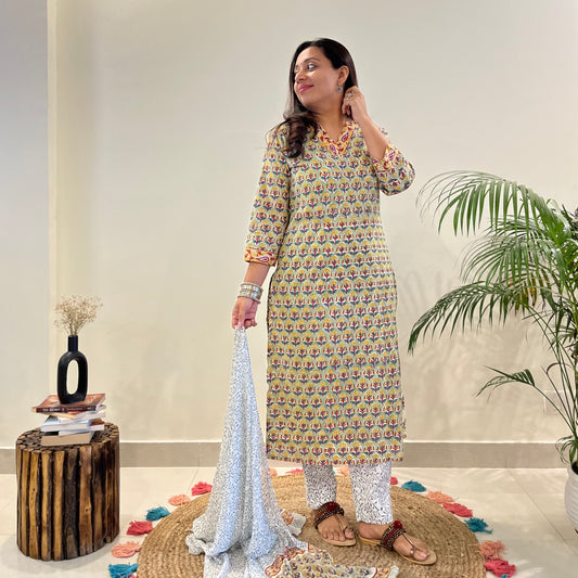 Jashn Cotton Kurta Set_Sukoon (set of 3pcs.)