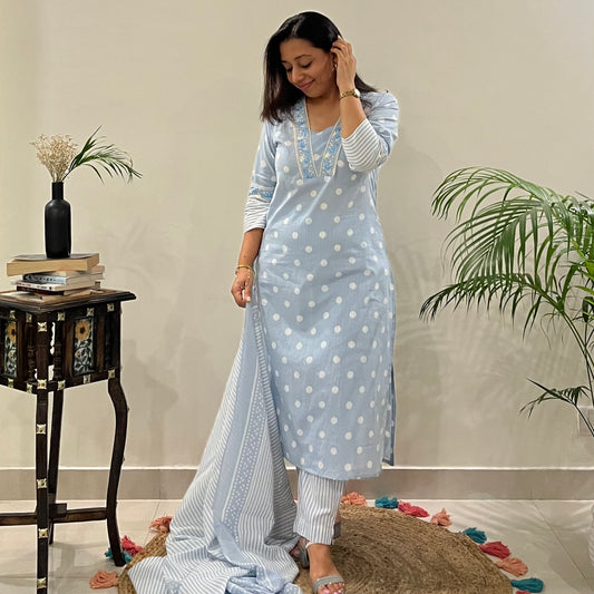 Kaya Mulmul Cotton Kurta Set_Blue (set of 3pcs.)