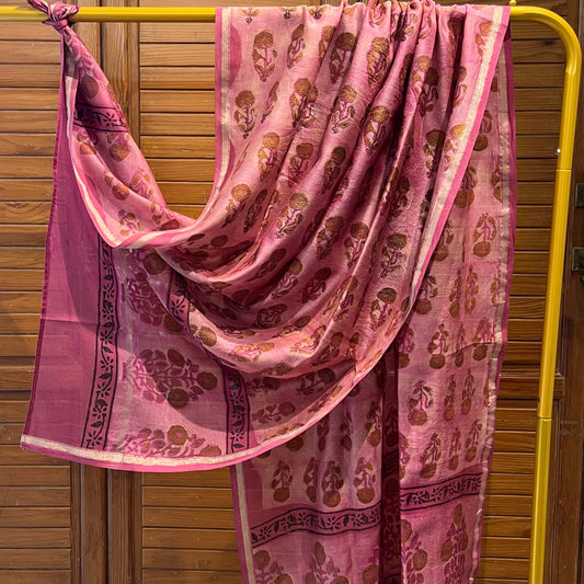 Sold outChanderi Handblock Printed - Pink