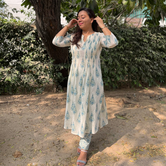 Kapaas Hondloom Cotton Kurta Set_Blue