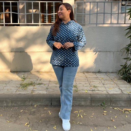 Hand Block Printed Hoodie - Blue