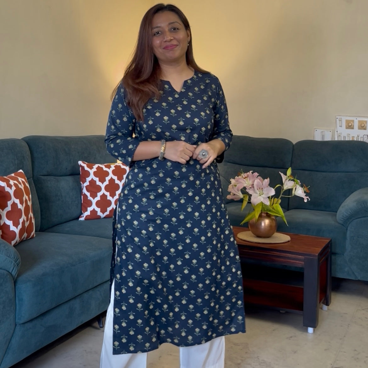 Rozana 2.0 Pure Cotton Kurta_Navy Blue