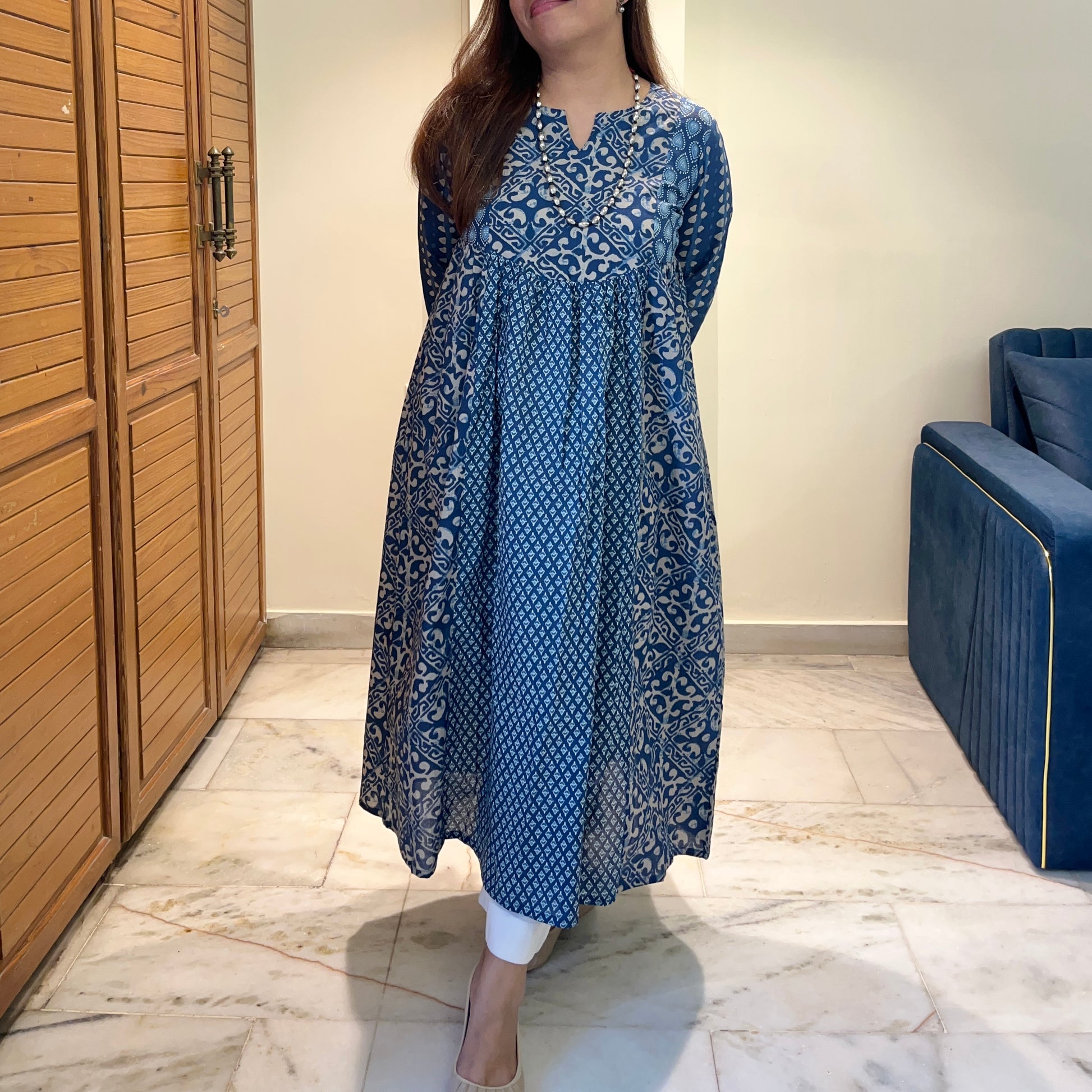 Ruh- Handblock Printed Everyday Kurta - Blue
